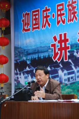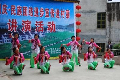 9月29日,由宣恩县民宗局、宣恩县珠山镇卸甲坝村联合主办的”迎国庆·民族团结进步宣讲进村寨”活动进入卸甲坝村,县民宗局副局长孙万心从民族政策文本的角度,讲解了执行民族政策、促进民族团结平等和社会进步的意义(图一);卸甲坝村农民业余文艺宣传队、珠山镇双龙湖耍耍表演队则用快板、耍耍、滚龙莲湘等文艺形式,寓讲演于乐地介绍了发展支柱产业、改善基础设施、实行计划生育等对促进民族团结、平等、进步的实际意义(图二);卸甲坝村村民有所思,有所悟,亦有所感(图三)。(签约摄影师汪盛华杨桦杨鹏芝)