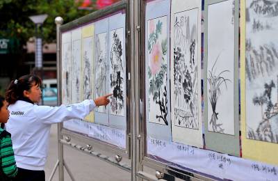 9月30日,100余幅优秀少儿国画作品在宣恩县城区广场展出。随着素质教育不断推进,山区儿童德、智、体、美、劳方面得到全面发展,孩子学习之余的特长得以发挥,少儿艺术在山乡孩子中蓬勃发展。据介绍,这也是当地首次举办以少年儿童为主创的国画展赛。本报视界网宋文摄