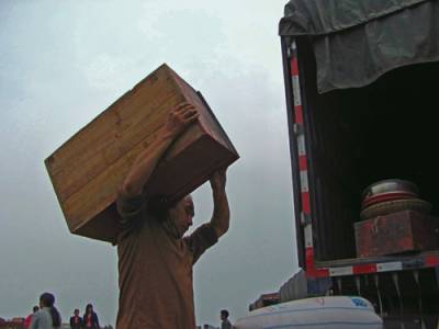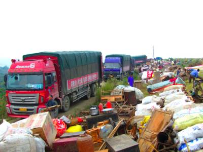 9月30日上午12时许,安阳镇最后一批外迁的109户468名移民顺利入住襄樊市襄阳区襄北农场四分场四中队新家,这标志着安阳镇11个批次、8800名的移民外迁大战役取得全面胜利。图为29日上午此次搬迁的大柏树村移民在货场装货。