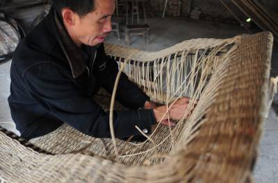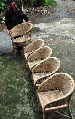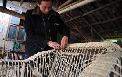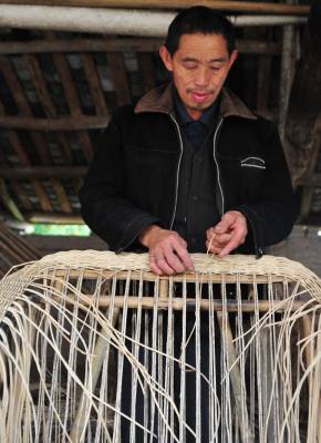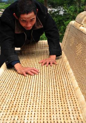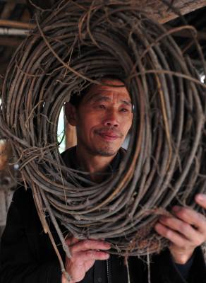 今年55岁的侗族老人钟清平,是湖北恩施市芭蕉佩族乡高拱桥村人,至今从事藤编手艺有40个年头,他充分利用恩施大山中丰富的青藤资源,编织藤椅、藤方桌、藤圆桌、藤篮、藤床、藤沙发等一系列藤产品,由于老人编的藤产品经历耐用,消费者上门订货,老人的藤编产品供不应求。