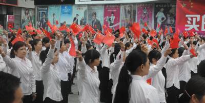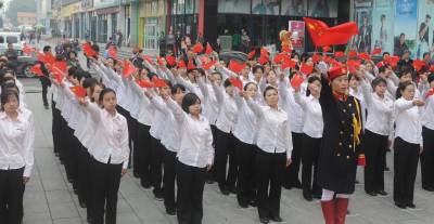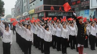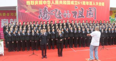 10月1日清晨,湖北襄樊军翔服饰举行百人合唱仪式,员工高歌《歌唱伟大的祖国》、《今天是你的生日》等歌曲,歌颂腾飞的祖国,庆祝中华人民共和国成立61周年。