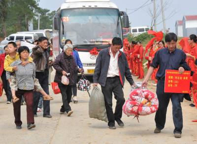 图片 国庆前夕宜城市工作队迎接郧县移民进新家