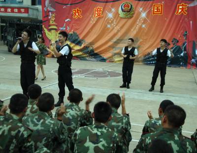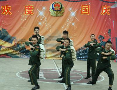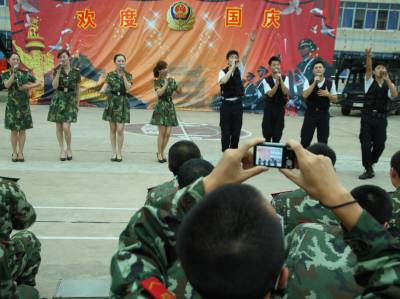 > 武警湖北总队文艺兵与执勤官兵联欢庆国庆