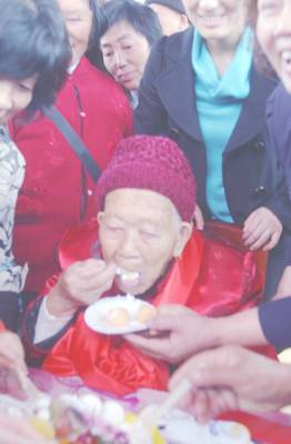 两个世纪百岁老人唐卯姐是鹤峰县燕子乡百岁老人,百年显然很短,跨过世纪的漫漫岁月,蕴藏着深厚的生活积累,辛勤劳作及生活习惯使百岁老人感受今天幸福来之不意。让后代享受着甜美的果实五代同堂享受人间天伦.本报视界网,方国平摄
