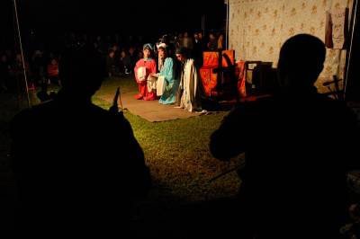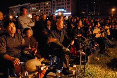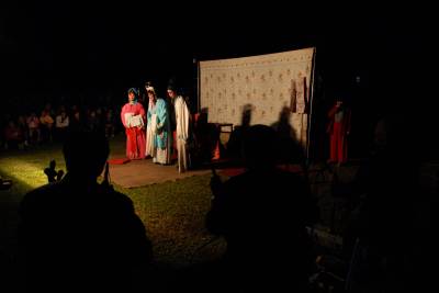 9月2日,湖北云梦人民政府广场,千余观众坐在露天的广场,开心欣赏来自黄冈楚剧团的演员们表演传统楚剧艺术。国庆长假期间,该县举办系列高雅艺术活动,让百姓过上一个文明愉快的假期。