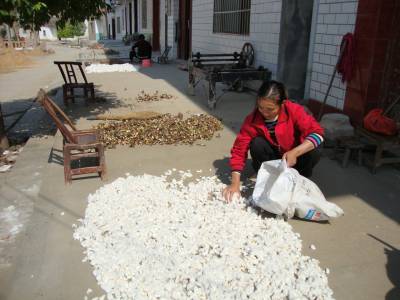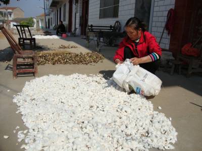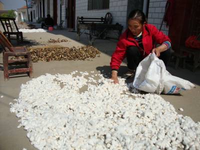 日前,汉川市麻河镇棉花种植户种植的优质棉由于虫害少,质量好,产量高,价格一路看涨,值此国庆黄金周期间棉价已涨到每公斤8元的好价格,该镇棉花种植大户的日产值已达千元。图为10月4日,该镇祠堂村农户正在凉晒刚采摘的新棉。签约摄影师邹开建摄通联:汉川市麻河镇党政办公室电话:13197382491