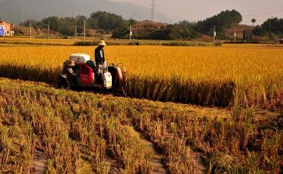 山里农民收稻忙