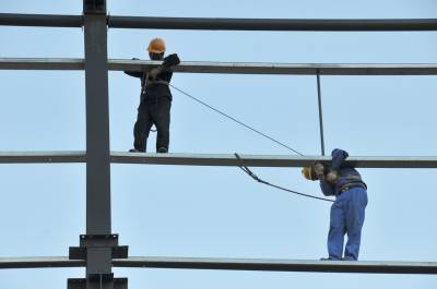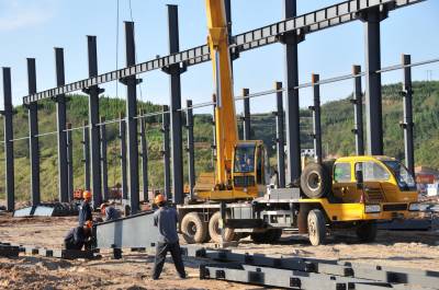 10月4日,湖北省郧县汉江南岸的经济开发区引资10亿元的最大项目川路工业园的建设职工正在吊装车间钢架,湖北川路汽车有限公司是由国内知名企业大运集团投资建设,厂区占地面积1136亩,一期建设面积9.8万平方米,建成年产3万辆汽车改装生产线,300米长汽车装配线,两条汽车检测线,污水处理系统,以及外网配套设施等,该工程以节能环保型为主题,2011年3月将建成投产.川路工业园全部建成后将年产15万辆整车和配套零部件,年产值可达300亿元,实现利税20亿元,解决就业6000人,预计2011年8月1日川路工业园全部建成.大运集团现己自主研发申报150个品系,500个载重汽车变形车产品,并与国际技术标准接轨.图1为吊车正在吊装车间钢架时的情景.周家山摄湖北省郧县城建监察大队电话13872840078邮编442500