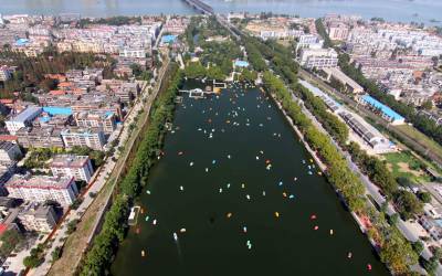 > 湖北襄樊:休闲国庆节 荡舟护城河
