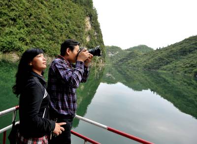 4日,一批来自湖南洛阳、湖北黄石等地的游客在宣恩县彭家寨、双龙湖等景区游玩,然后前往他们不远千里到恩施旅游的最终目的地——恩施大峡谷。今年是恩施开通高速公路后迎接的第一个旅游黄金周。游人为了错开去土司城、恩施大峡谷、腾龙洞等重点景区的游客高峰,选择到附近一些小景区体验生态游、民俗游,尽情感受恩施山水魅力和民俗风情,这不仅减轻了正在”适应期”的恩施重点景区的压力,同时也促使恩施旅游空间向纵深拓展。本报视界网宋文摄