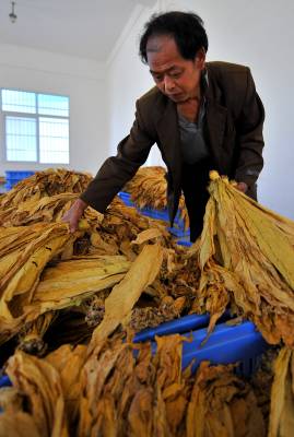 10月5日,宣恩县和平烟叶收购站,农民有序出售烤烟。在宣恩县,农民常年种植烤烟7万亩,烤烟种植是农民现金收入的”第一支撑”。为尽快将农民一年的劳动收成”变现”,烟叶收购企业一方面组织人员到农户开展初检以缩短烟农售烟的等待时间,另一方面确保节假日、双休日照常收购,方便烟农售烟。本报视界网宋文摄