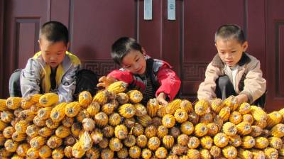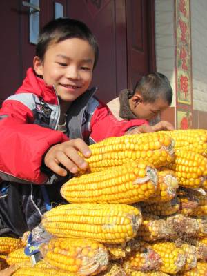5日上午,十堰市郧县刘洞镇杨河村几个小孩在玉米堆里玩垒长城游戏,欢声笑语充满农家小院。眼下正是金秋时节,该县秋粮再获丰收,各地农家小院堆满了玉米、稻谷、黄豆等各种秋收作物,呈现一派丰收景象。(湖北郧县新闻宣传中心曹忠宏邮编442500电话13294212877)