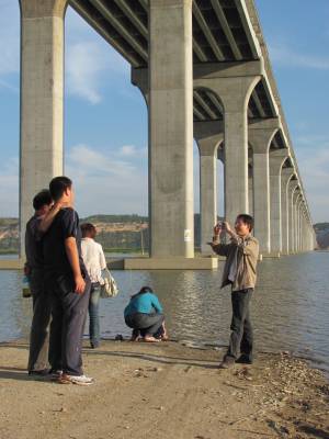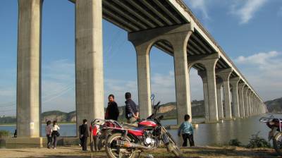 3日下午,十堰市郧县在建汉江二桥初现雄姿,众多游客利用”十一”黄金周慕名前来参观,并拍照留念。郧县汉江二桥全长2102米,宽18米,桥面标高183.7米,项目总投资2.5388亿元。目前该桥下部结构已全部完工,主桥建设正加快推进。引桥44跨已经完成32跨。(湖北郧县新闻宣传中心曹忠宏李兴艳邮编442500电话13294212877)