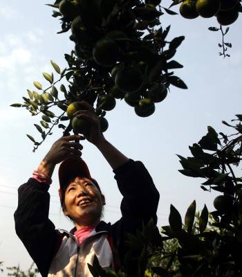 宜昌小蜜橘大产业2010年10月7日,宜昌市西陵区窑湾乡橘农采摘”宜昌蜜橘”。湖北省宜昌市充分发挥农业柑橘合作社的产业龙头作用,对柑橘生产实行技术推广、产品销售服务一条龙。全市柑橘总面积达到170万亩,预计今年产量可望超过180万吨,目前,大部分桔园开园采摘,销售渠道畅通。文振效