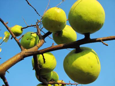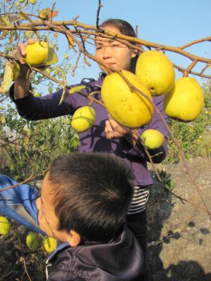 10月7日上午,十堰市郧县刘洞镇杨河村一农家女青年正在木瓜基地摘木瓜。该县自2004年开始发展木瓜产业,现木瓜基地累计达22万亩,覆盖全县20个乡镇,10万余农户,15个专业村,已挂果6万亩,其中进入盛果期的有3万亩。据测算,今年鲜木瓜产量在3万吨左右,产值可达3000万元,瓜农人均增收250元。今年7月30日,国家质检总局批准对郧县木瓜实施地理标志产品保护,该县正致力打造”中国木瓜第一县”。(湖北郧县新闻宣传中心曹忠宏邮编442500电话13294212877)