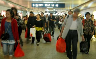 国庆节长假结束7日,武昌火车站出站口挤满回家的旅客。当日是国庆节长假的最后一天,许多市民在享受了国庆节长假的外出游玩后,纷纷踏上了回家的路。黄石市黄石日报摄影部邱孝威摄
