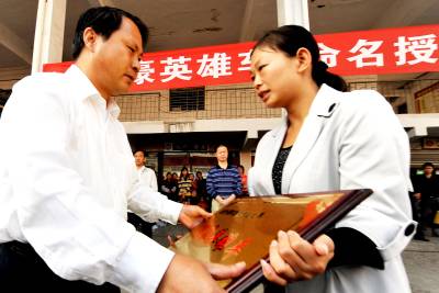 10月8日上午9时,南漳县政协副主席、县交通运输局局长张志华将”李豪英雄车”匾牌授予李豪妻子伍宗娥。当日,湖北省南漳县交通运输局在县汽车客运站隆重举行仪式,对李豪生前驾驶的鄂F61398号公交车授予”李豪英雄车”荣誉称号。9月25午上午10点50分,南漳县18路公交车司机李豪和妻子伍宗娥,挺身而出制止行窃作案分子侵犯乘客利益,李豪不幸被刺牺牲。为了表彰李豪、伍宗娥见义勇为的精神,弘扬社会正气,南漳县交通运输局党组决定,授予李豪生前所驾驶的鄂F61398号公交车为”李豪英雄车”,并号召全县交通运输系统干部职工学习李豪夫妇见义勇为的英雄事迹、不怕牺牲的英雄气概,继承和发扬南漳交通人”特别能吃苦、特别能战斗、特别能奉献”的优良品质,为促进南漳交通运输事业又好又快发展做出新贡献。据了解,李豪牺牲后,其生前所在同事石爱国和朋友许定斌分别担任售票员和司机,从9月30日开始,义务为李豪夫妇所在的18路公交车,从事客运服务工作。南漳县交通运输局党组经过研究,决定将李豪妻子伍宗娥安排到该县城市客运管理处工作,有关手续正在办理之中。