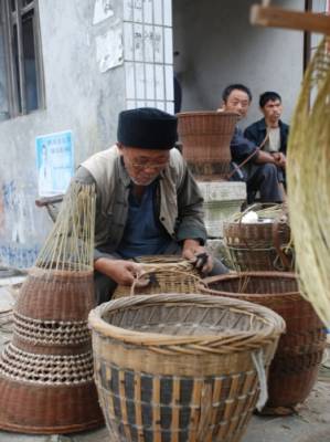 10月8日,宣恩县李家河乡老篾匠杨绍年正在为乡邻修补背篓。竹筐、竹篓、簸箕……这些曾经必需的生活篾制用品随着塑料制品的出现,几乎被淘汰,这些守望传统的竹篾匠只能干一些修修补补的篾匠活,但他们成了农村生活中不可缺少的角色,他们的存在,永远是乡村一道独特的风景线。