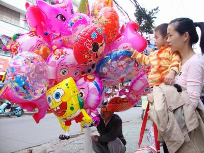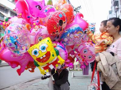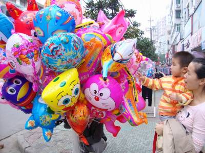节日喜庆气氛浓国庆期间,为烘托节日的喜庆气氛,汉川市麻河镇各商家争相打出精美的”购物大餐”点缀大街小巷,吸引顾家购买。那五颜六色的饰品、火红的鲜花将小城镇装点得多姿多彩、美丽动人。图为10月7日,该镇一幼儿园小班的小朋友在妈妈的带领下选购彩色充气球的情景。签约摄影师邹开建摄通联:汉川市麻河镇党政办公室电话:13197382491
