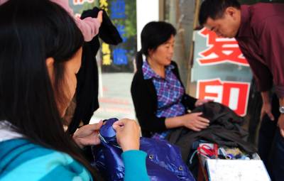 现代”织女”现代”织女”5日,湖北省潜江市杨市办事处蔡湖村白一清在为顾客织补衣服。白一清原是一名下岗职工,做了10年的”织女”,今年带动5位姐妹加入”织女”行列,开办了一家有自己独立店面的”一清织补”店。潜江市活跃着一群心灵手巧的”现代织女”,她们用手中的绣花针、七彩线为勤俭节约的市民缝缝补补,成为市民不可或缺的群体。吴燕军摄