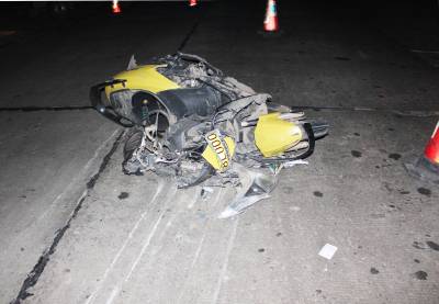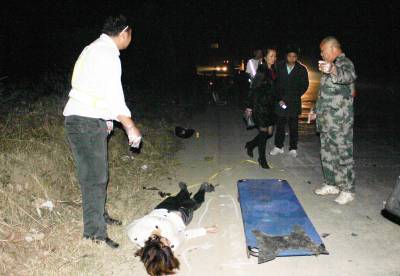 10月7日夜,孝昌107国道发生一起交通肇事逃逸事故,该县19岁少女刘某被撞身亡。孝昌交警大队领导迅速组警力侦破,仅用半小时锁定并成功拦截住肇事车辆。当晚22时许,笔者来到107国道1142KM+300米处(花园北大桥头),见19岁少女刘某仰面躺在桥头附近的国道西侧,120急救医生证实刘某已经死亡。国道西侧路面散落着许多破碎的零件,刘某所骑乘的铃木二轮摩托被肇事车推行70余米后,面目全非地横躺在国道中间。21时50分许,孝昌交警大队接到肇事逃逸报案后,副大队长刘小华、黄超和中队长周俊涛带领5名民警迅速赶到现场。刘小华和王店、花园中队取得了联系,立即上路检查拦截可疑车辆;周俊涛带领民警仔细勘察现场,从散落的零件中寻找肇事车辆的脱落物;黄超带领2名民警进行调查走访,寻找目击证人。22点07分,民警在大量的摩托车破碎零件中,找到一块大货车的脱落物,将车型锁定为重型厢式货车;22点11分许,走访的民警找到一名目击者,了解到肇事车为河南重型厢式货车,车牌尾数是”72”;22点20分,王店交警中队成功地将一辆豫A**072车牌大货车拦下,发现该货车驾驶室前破损处与肇事现场遗留的脱落物吻合。目前,肇事的大货车司机岳某(河南省新密市刘寨镇人)已经被行政拘留。宋俊初摄