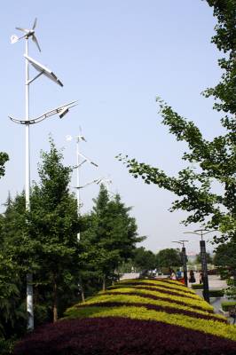 全永磁悬浮风光互补路灯,无论晴天雨天,风大风小,全天候发电.实现零电费,零排放。这一清洁,环保,节能新能源产品得以运用。