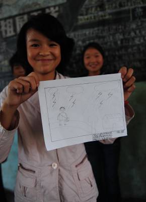 漫画世界邮政日9日,湖北省潜江市周矶农场中学美术兴趣班同学展示他们刚创作的邮政漫画,漫画作品有的歌颂风雨无阻的邮递员,有的畅想未来邮政。当日是第41个世界邮政日,主题为”情系万家 信达天下”,该校积极向学生宣传邮政知识,美术兴趣班学生创作了50余幅漫画作品,用手中的画笔描绘他们心中的邮政。吴燕军黎川摄