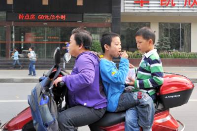 10月9日天中午,一辆电动自行车在襄樊市的七里河路机动车道上急驰,车上两名学生相对而坐地吃着东西,令所有的目击者心有余悸:如果遇到紧急情况,一个急刹车,就会让孩子的筷子撞入孩子的咽喉。
