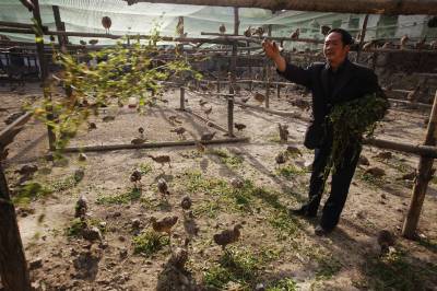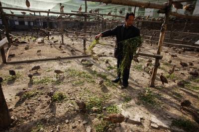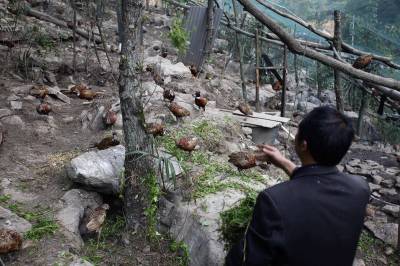 五峰大力发展特色养殖2010年10月9日,五峰土家族自治县长乐坪镇三教庙村张建平为野鸡投食。张建平将山里野鸡通过训化繁殖,实行工厂化养殖,既可观赏又是绿色佳品,他所养殖的5000多只山鸡,早已被天津和江浙地区客户下订单。文振效、路娟摄