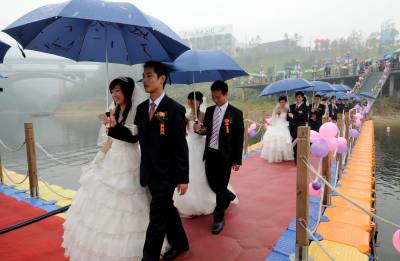 > 十堰举行水上集体婚礼