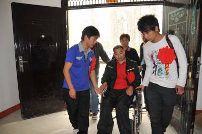 图片 医护人员帮助瘫痪移民李尚华顺利搬进潜江新家园