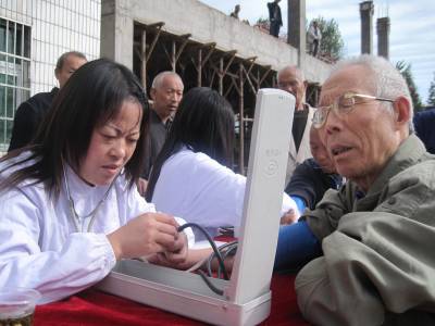 10月11日,在重阳节到来之际,郧县刘洞镇政府、镇中心学校组织刘洞镇卫生院的医务人员为该镇退休老年教师作义务医疗咨询。