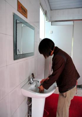 2010年10月初,湖北省宜昌市夷陵区首座泡沫式节水生态智能环保公共厕所在城市街头投入使用。这种环保公厕采用生态环保和节水新技术,将极少量的水发泡成上千倍泡沫覆盖在便器内对污物进行处理。同时安装智能化控制系统、立体除臭系统、组合式多功能粪池处理器、泡沫流量红外线控制器和自动感应灯等设备,实现对污物自动感应处理。本报视界网张国荣摄