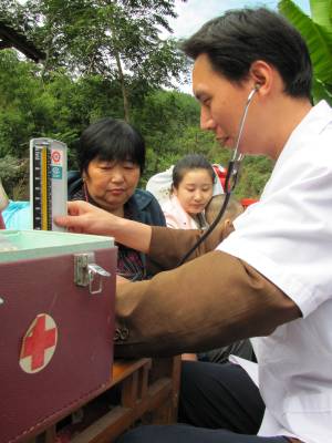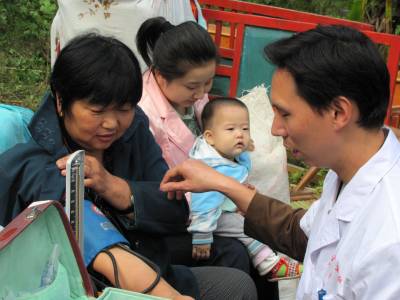 10月11日上午,郧县青山镇卫生院医生正为该镇秦家沟村4组移民陈秀莲量血压。该镇秦家沟村、白果树村131户582人将于12日迁往襄樊市襄阳区。为确保移民顺利外迁,当天镇医院成立了医务巡逻队到移民村对体质异常移民进行免费体检。截至目前,郧县已顺利外迁移民4453户20449人,占总数的67.57%。(湖北郧县新闻宣传中心曹忠宏摄)