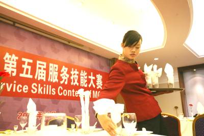10月12日,仙桃市天怡大酒店和花源酒店举行服务技能大赛,选手们在擂台上各显身手。随着仙桃经济跨越式发展,外地来仙桃旅游、度假、洽谈生意的客人日渐增多,为提升服务接待水平,仙桃外事旅游部门定期组织市内的宾馆、酒店开展服务技能大赛和培训,更好的服务八方宾客。吴三红摄