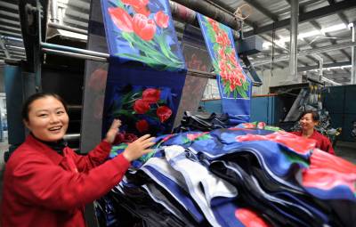 12日,监利县玉沙集团公司的生产线正满负荷运转。这个公司利用当地的棉花和劳动力,进行棉纺织加工生产,产量连续三年成倍增加,并全部销往欧美等国际市场,将当地出口棉花改为出口毛巾等棉产品。(记者杨平摄)