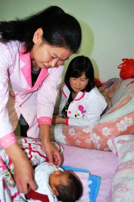 计生服务上门常态化罗田县平湖乡计生服务站坚持上门服务常态化,他们特别注重对农村孕妇的孕期检查,产后对产妇及婴儿的回访。图为12日上午平湖乡计生服务人员(左一)在丁家套村查看新生儿生长情况。本报视界网王志高胡国林摄