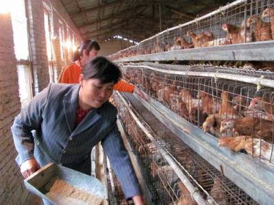 10月12日下午,郧县安阳镇由原寨沟村小学校舍改造成的养鸡场的工人正在为鸡添加饲料。近几年,由于多种因素,农村生源大量缩减,部分村小每年只剩下一两个学生。为了整合教育资源,安阳镇撤并了10几所村小,一度书声琅琅的校园一下变成了废弃校园。安阳镇积极招商引资,在这些废弃校园里办起了养鸡场、养猪场,开辟出蔬菜基地,年创产值100多万元,把废弃校园变成了聚宝盆。