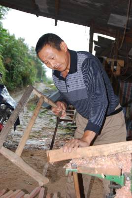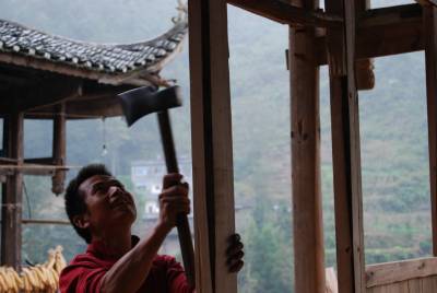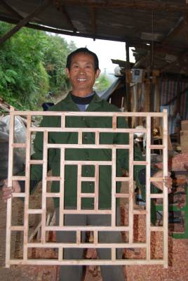 10月11日,宣恩县组织的湖南永顺民间仿古建筑队,正在”人间吊脚楼群第一寨”——宣恩彭家寨,锯木块(图一),做成万字格窗户(图二),安装新门窗(图三),拯救彭家寨。为了拯救已有300多年历史、正在逐步毁损的彭家寨,宣恩县民宗局争取并投入项目资金70万元,2010年4月开始,组织湖南永顺民间仿古建筑队对彭家寨45户的39栋吊脚楼新安装万字格窗户、步步井护栏,用木板包装砖墙,施工现已接近尾声。拯救后的彭家寨”整旧如旧”,土家族特色更加鲜明(图四)。(签约摄影师汪盛华孙万心徐贤翔)
