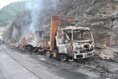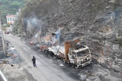 大货车违载易爆物品行驶途中起火爆炸 鄂陕两省公安、消防联手救援