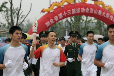 > 京山城万人空巷迎接省运圣火