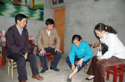 武汉市总工会领导来3509公司了解特困户生活情况10月14日,武汉市总工会保障部部长吴珊(右一)、武汉市国防工会主席王跃初(左一)等领导一行冒雨驱车来到际华3509公司,详细了解了鲁红萍、谭红、杨金华、李红梅四个特困家庭的生活以及子女读书等情况,开展”金秋助学”活动,带来了工会组织的关爱和温暖。虞炬摄