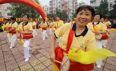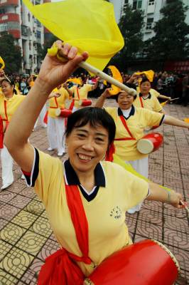 10月15日,宜昌市猇亭区老年体育协会的老人们在该区中心广场进行腰鼓表演。当天,猇亭区数千名老年朋友们聚集在中心广场,通过歌舞、象棋比赛、绘画等多种形式庆祝自己的节日。本报视觉网唐水唐摄