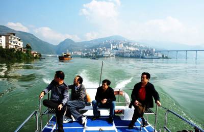 巴东加大蓄水库岸巡查确保万无一失(图)15日,巴东县官渡口镇移民、安办、国土等相关人员组成的水上巡逻队正在长江水域西瀼口段进行蓄水库岸巡查。据了解,在本月底,三峡库区试验性蓄水将首次达到175米高程,为了确保群众人身、财产不受到威胁,溪丘湾、官渡口、东瀼口、沿渡河、信陵等五个乡镇党委政府已组成水上巡逻队,24小时加密巡查监测和零报告,对危险户实施了避让搬迁,在可能发生山体滑坡地段树立了警示牌。截止今天上午10点,三峡库区蓄水已至172.28米,无人员、财产损失报告,群众生产生活稳定。(本报视界网梁勇摄)