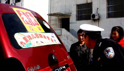 10月15日,在一校车驾驶室的醒目位置,湖北省秭归县公安局交警大队民警,为其配戴上老远就能认出来的”校车身份证”。经过责任主体、资质条件等指标的重新审查和检测,秭归县交警部门对重新核准的校车统一设计,穿上以前、后身份证和举报电话、核载人数等为特色标记的防护服。这身防护服俨然广大师生生命安全的保护色,不仅对其它车辆和行人主动避让是一种无声的提醒,而且有利社会监督,方便执勤交警沿途对其实施重点监管。文/图:吴令剑电话:(0717)288650818972594962地址:湖北省秭归县公安局政治处邮编:443600