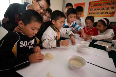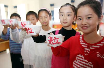 当日,湖北襄樊市米公小学组织学生们开展”节粮在我身边”主题教育活动,小学生们通过”数米粒”、创意”节粮点子”、创作”节粮主题作品”等,从小培养他们养成节约和珍惜粮食的好习惯。以此迎接世界粮食日的到来。