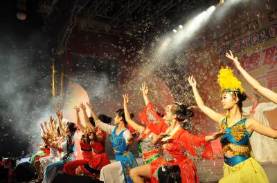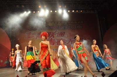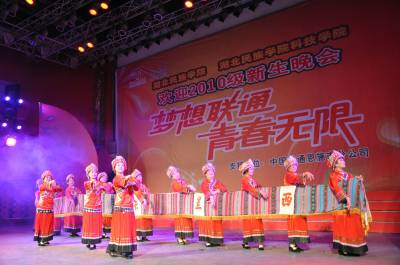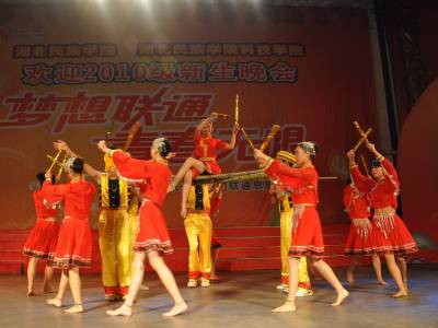 10月15日晚,湖北民族学院师生正在观赏一场饱含民族风情的民族舞蹈《西兰卡普》、《土苗情》和《七月火把节》等演出。当晚,湖北民族学院8000多名新生聚集大学生广场,通过欣赏饱含民族风情的歌舞演出,接受学校别出心裁的民族教育洗礼。