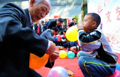 ”九九重阳节,浓浓敬老情”,10月16日,湖北省宣恩县的部分中小学生来到该县福利院慰问孤寡老人,给老人们送上了慰问品,并为老人们表演了精心准备的文艺节目,还与老人们开展趣味游戏,和老人们一起欢度”重阳节”。