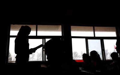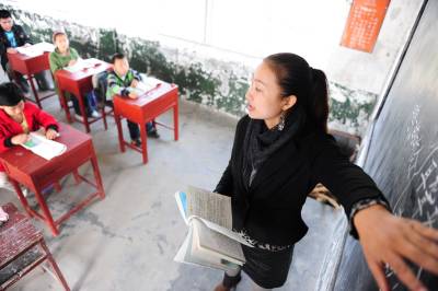 15日,湖北省潜江市周矶农场前进小学支教教师许彩红在戴湖小学给学生们上课。该市教育部门推行”区域一体化”联校办学和联片管理模式,破解义务教育均衡发展难题。全市共有228名教师从城镇(城区)学校到农村学校交流任教,30余名学校干部到农村学校交流任职;农村学校近160名教师到城镇或城区学校交流学习、挂职锻炼。吴燕军黎川摄