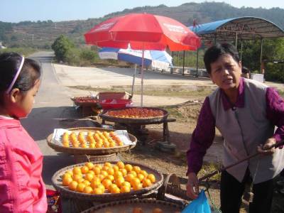”卖完了李子,卖板栗,如今主要是卖柿子。一天最多可以赚上200多元!”10月17日,在孝昌县观音湖生态文化旅游区陈井村,游客们在欣赏山水秋色之余,争相选购当地纯天然的柿子、南瓜、食用菌等农特产品。据悉,为充分放大旅游产业的辐射带动作用,该县已在通往观音湖景区的沿线开发出长12.6公里的现代农业示范带,栽植了桃、李、杏、柿、茶等果茶基地3万亩,产出的农特产品顺势搭上了”旅游快车”,增收效果日渐明显。(本报视界网项建华摄)【通联】孝昌县委宣传部新闻科项建华电话:138718990604763670邮编:432900